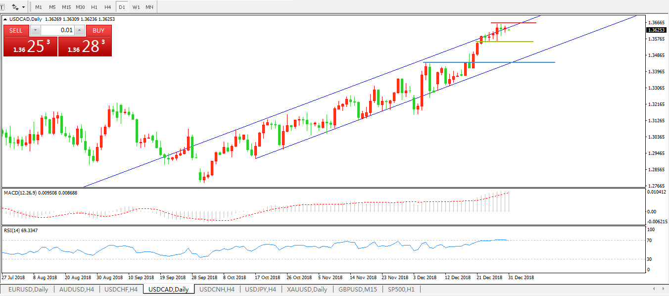 美元兑加元USDCAD 日线图: