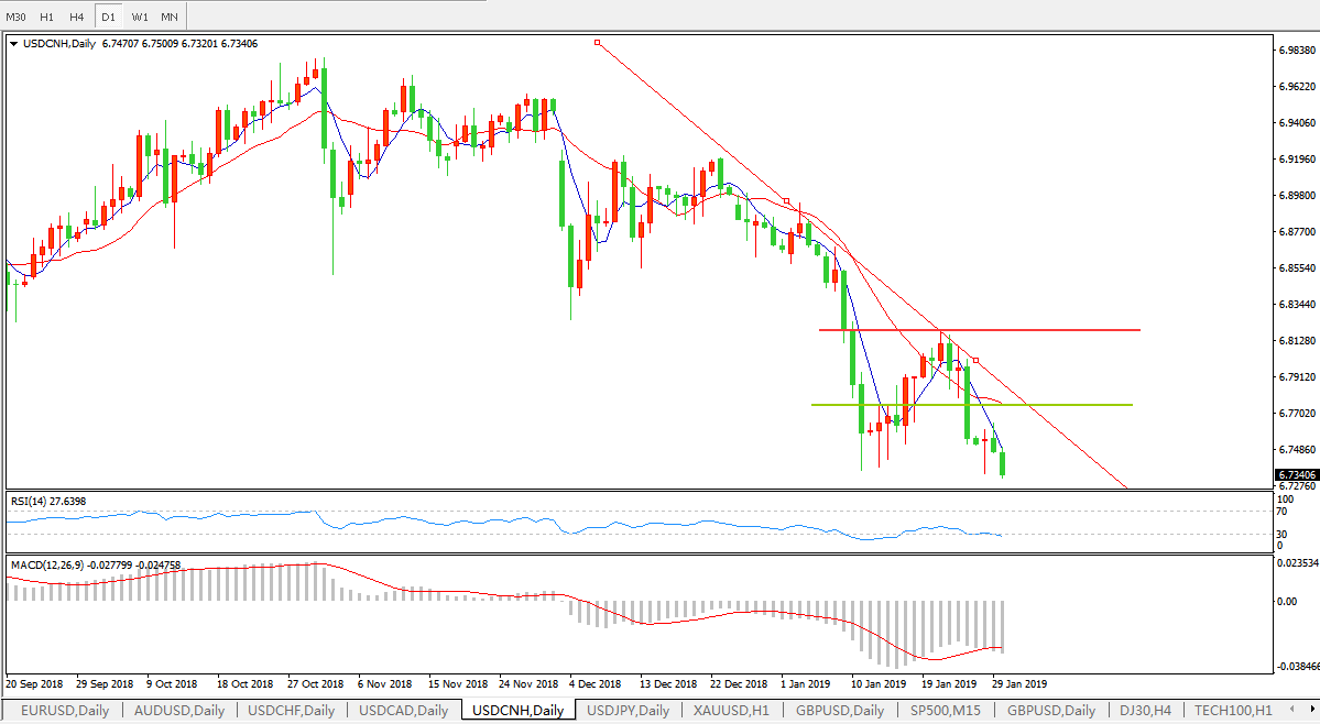 交易策略:6.7750下,看跌,目标价位为6.7240,然后为 6.7000