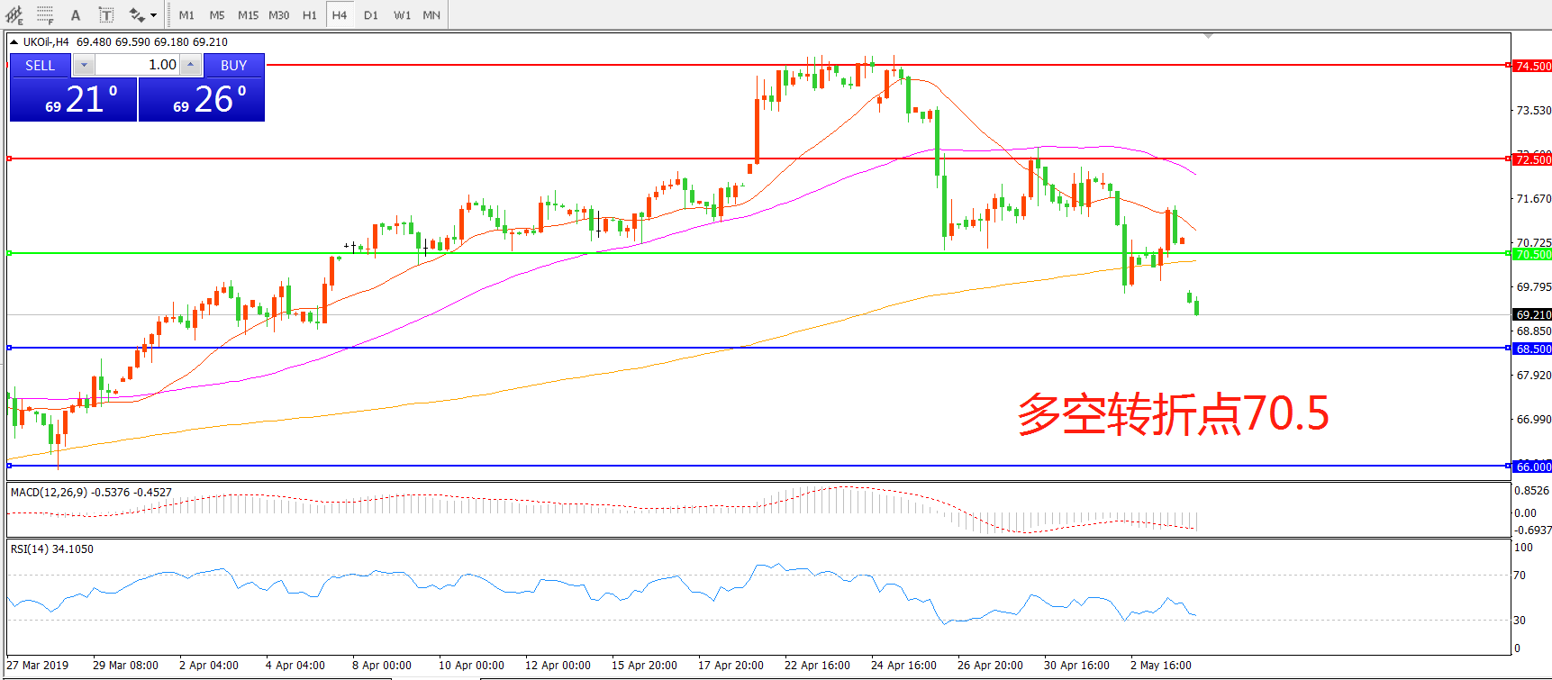 多空转折点:70.50