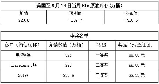 2019年6月第3期“EIA大竞猜活动的中奖结果已出,获奖信息如下: