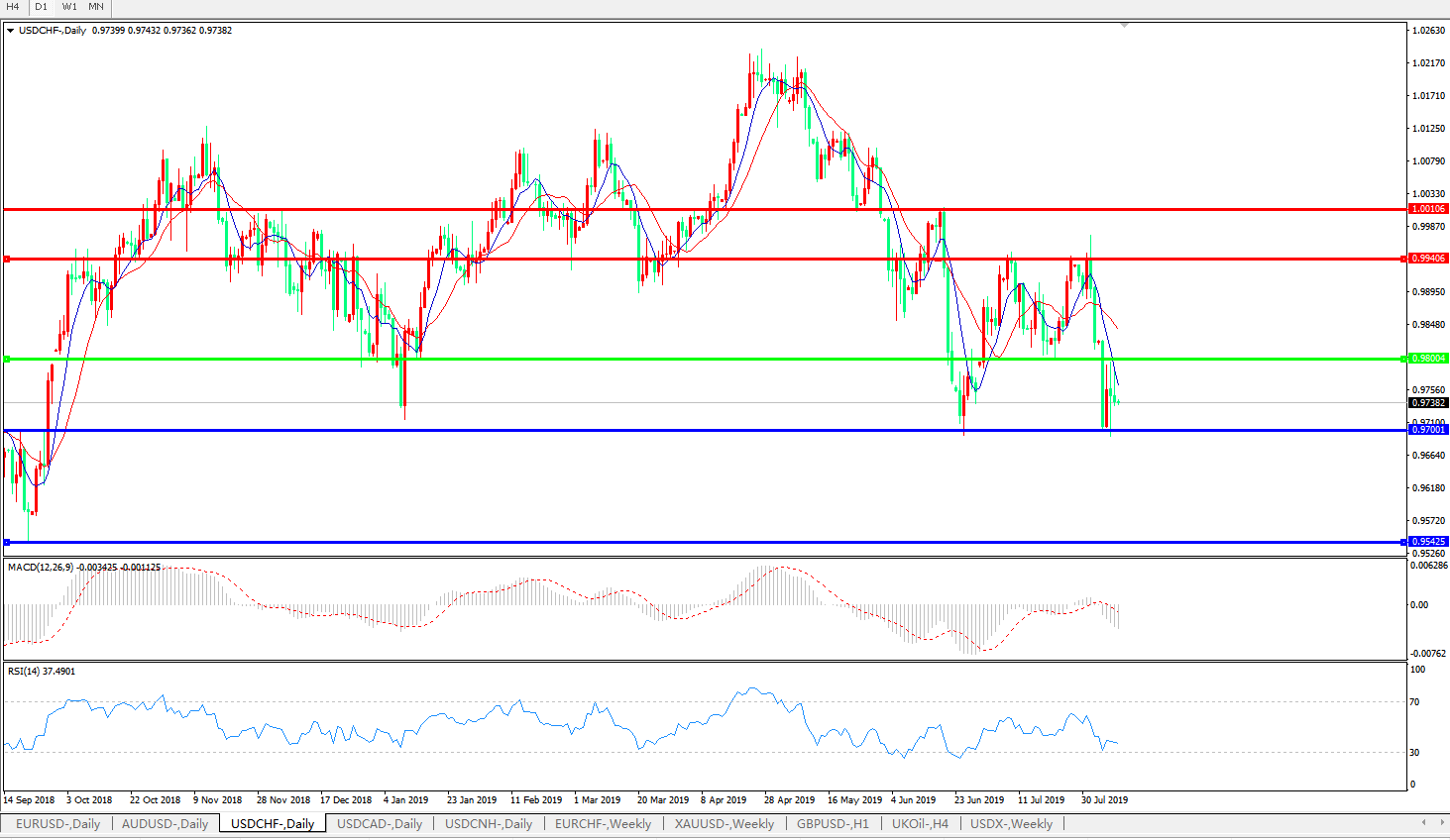 美元兑瑞郎USDCHF   日线图: