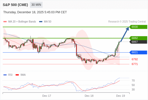 在 6821 之上,看涨,目标价位为 6882 ,然后为 6930 。