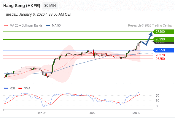 在 26550 之上,看涨,目标价位为 26930 ,然后为 27200 。