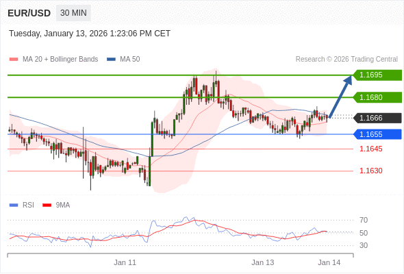 在 1.1655 之上,看涨,目标价位为 1.1680 ,然后为 1.1695 。