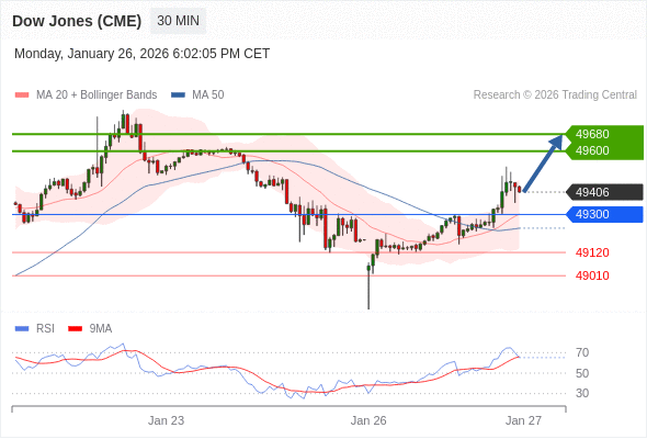 在 49300 之上,看涨,目标价位为 49600 ,然后为 49680 。