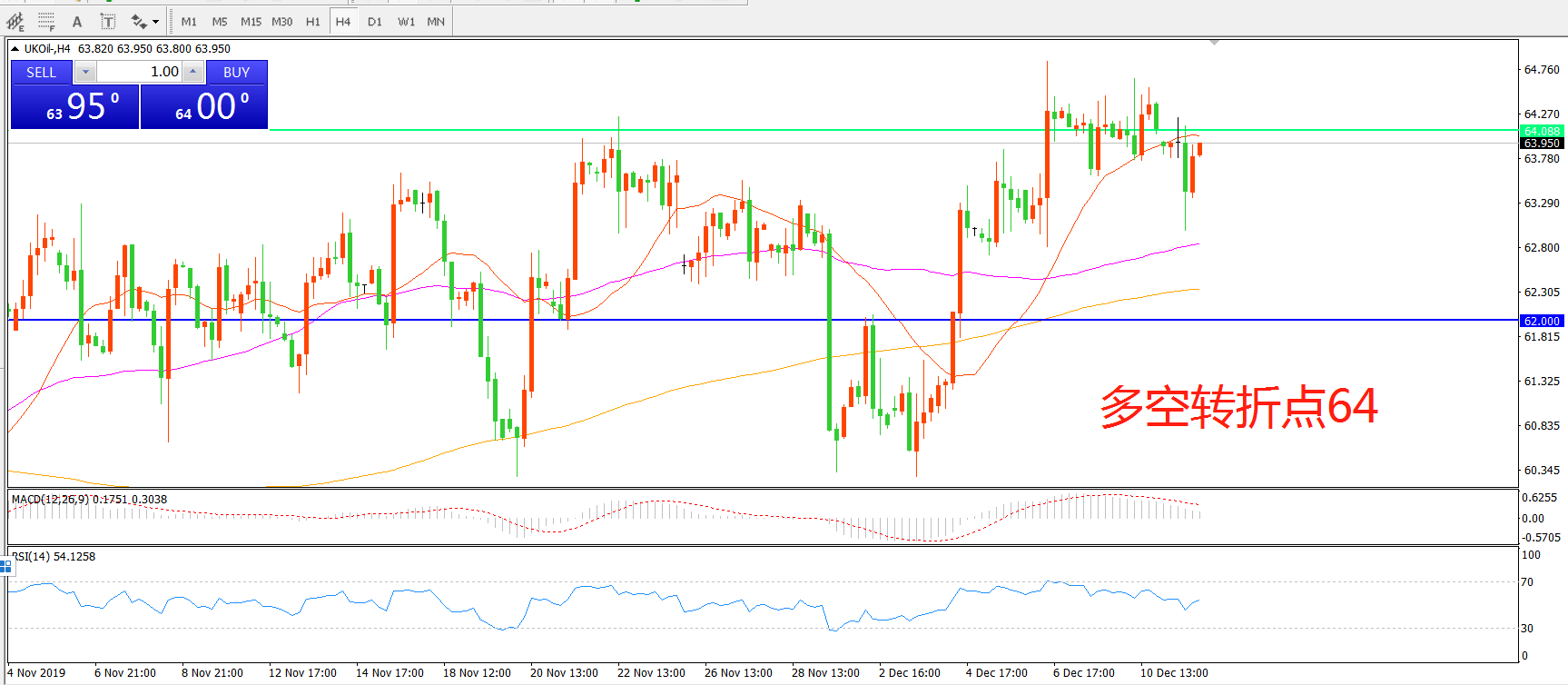 多空转折点:64.00