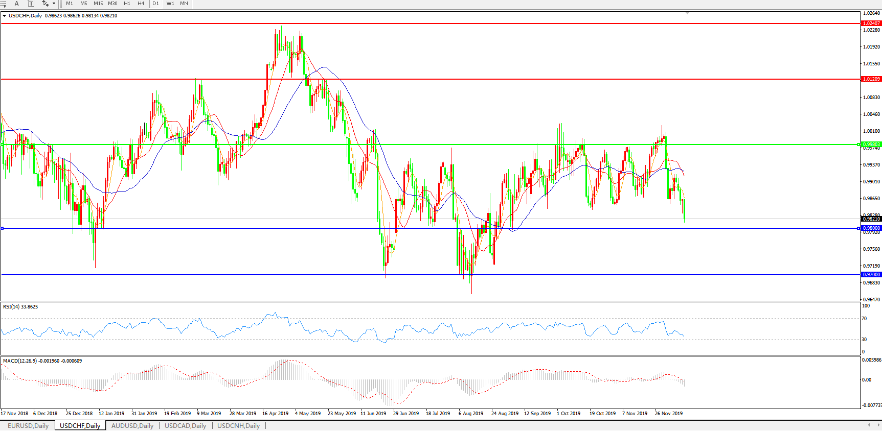 美元兑瑞郎USDCHF 日线图: