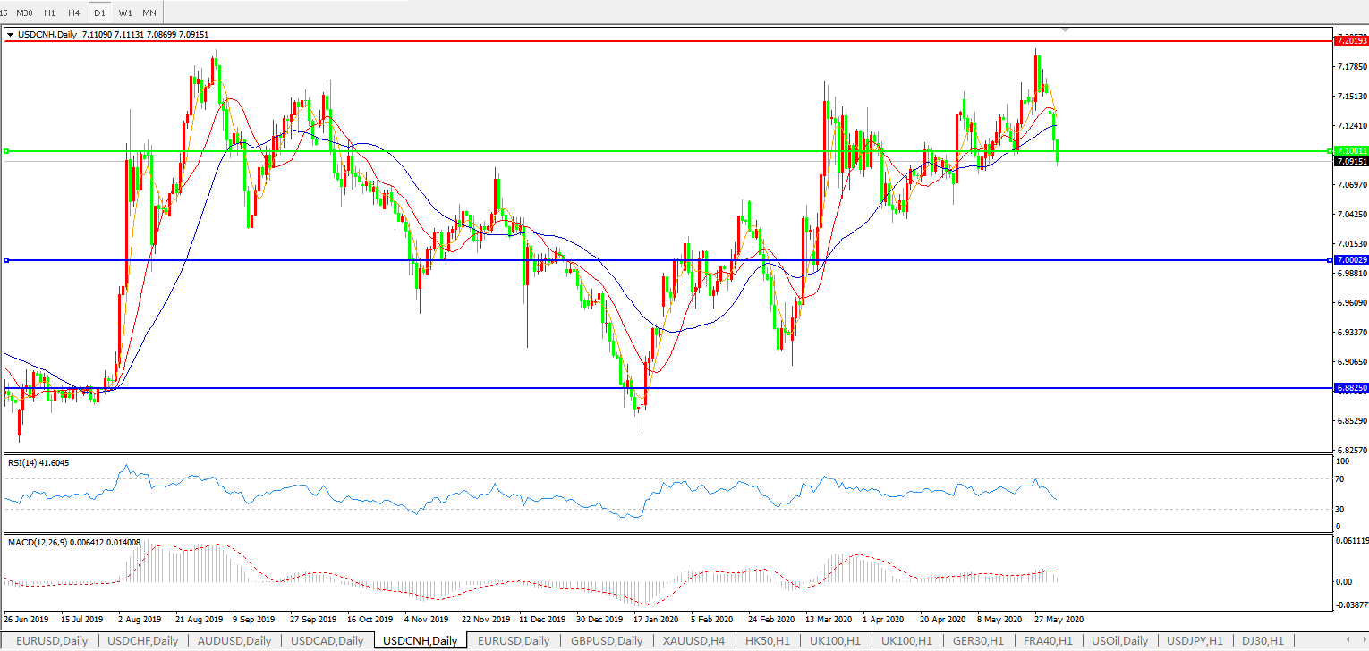 交易策略: 在7.1000之上,看涨,目标价位为7.2000,然后为7.3000。