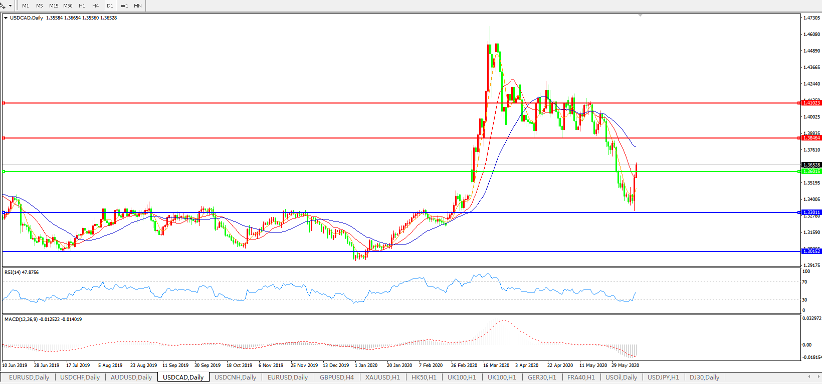 美元兑加元USDCAD 日线图: