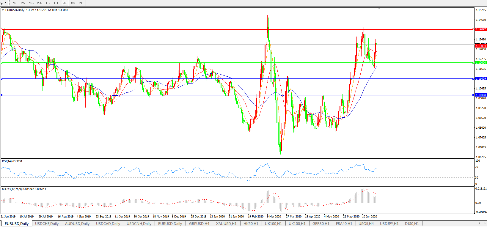交易策略:1.1200上方看涨,目标1.1300、1.1400