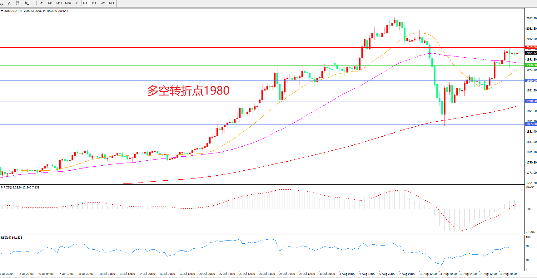 交易策略:在1980.00之上看涨,目标2015.00 2050.00
