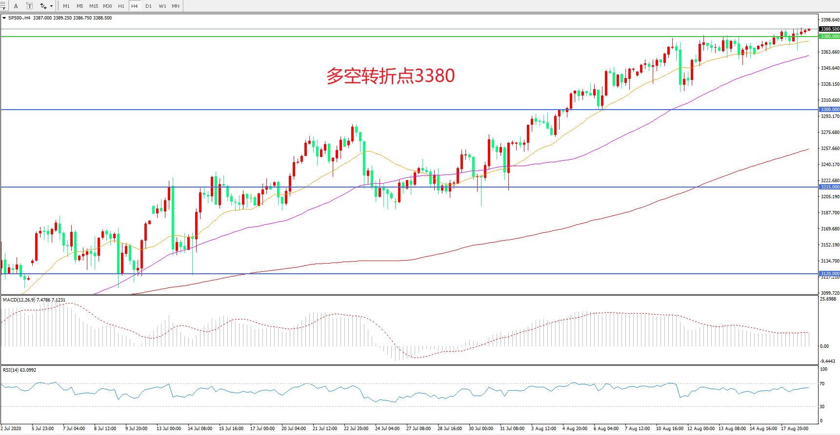 多空转折点:3380.00