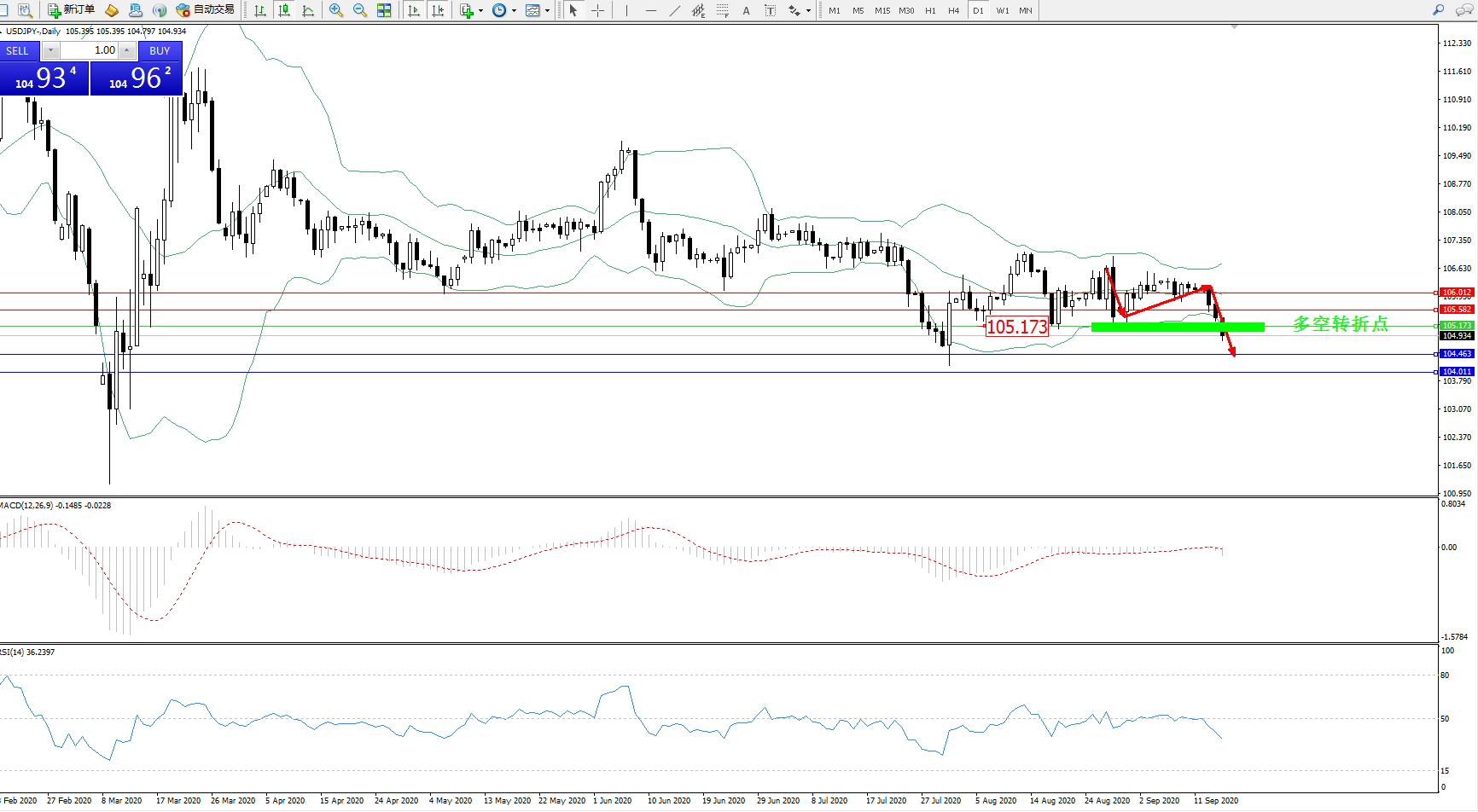 多空转折点:105.173