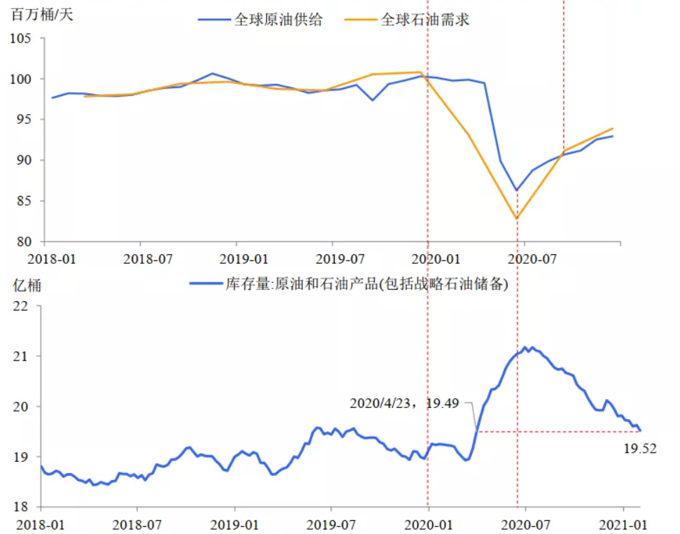 从需求端来看,疫苗大范围推广普及叠加美国新一轮财政刺激的加码,原油从需求端稳步回升,尤其是在美国国会已经通过拜登政府的预算决议后,新一轮约为1.5万亿美元的财政刺激有望于近期推出。