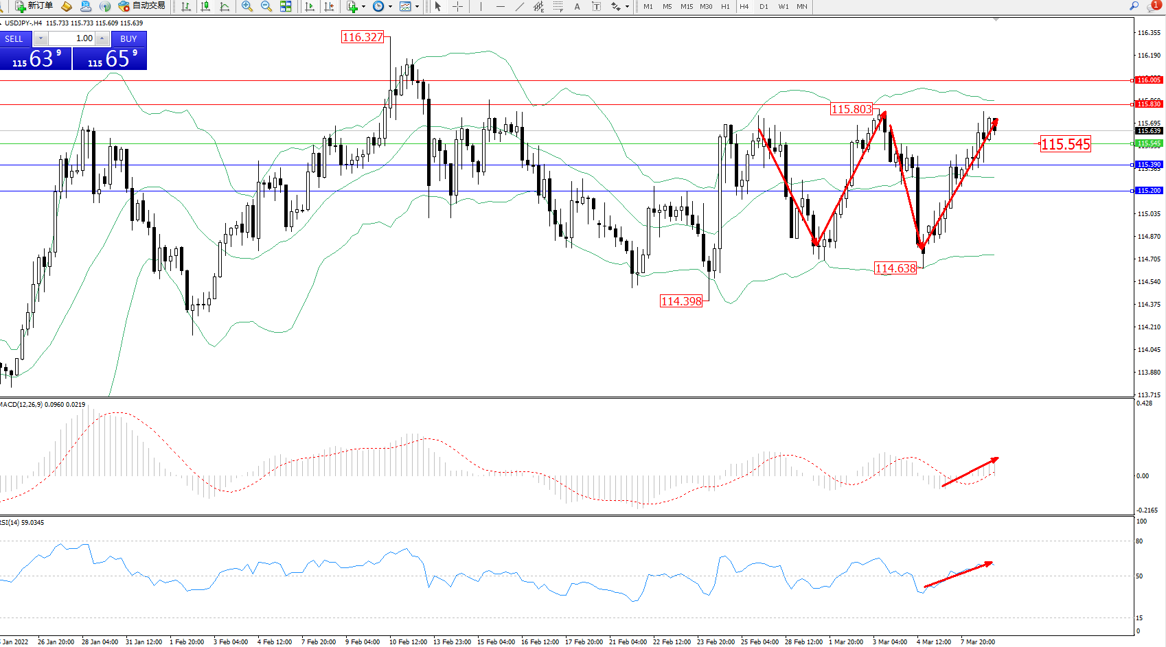 交易策略:115.545上方看涨,目标115.830、116.005