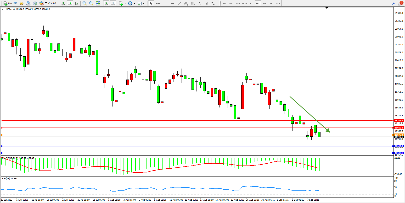 恒指HK50 4小时图
