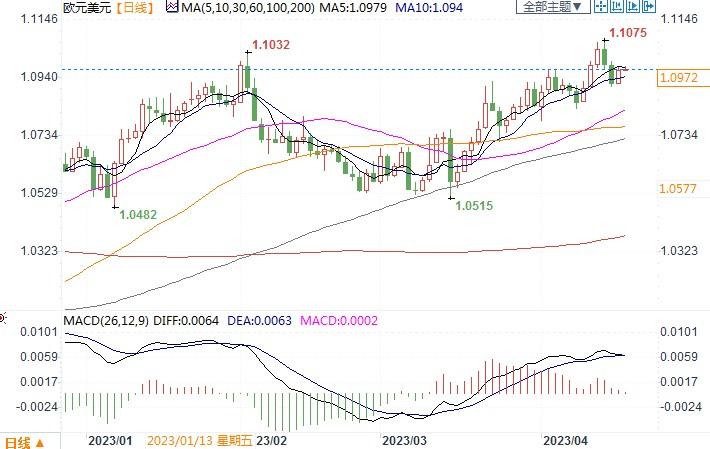 欧元兑美元日线图北京时间4月19日15:10,欧元兑美元报1.0963/64
