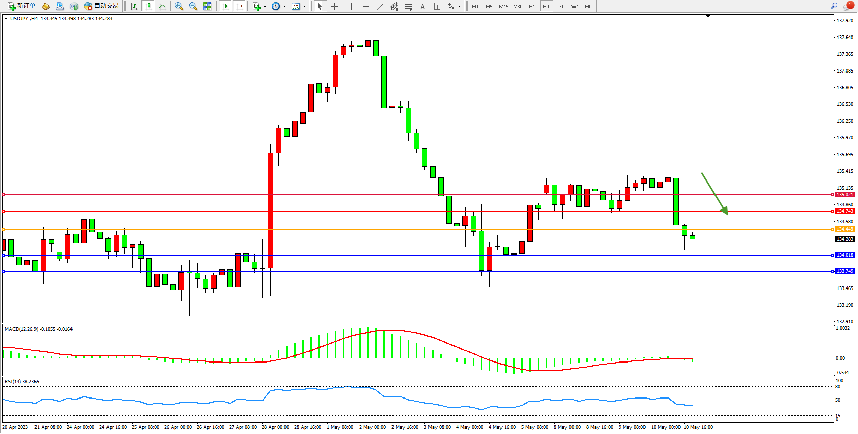 支撑位:134.018  133.749